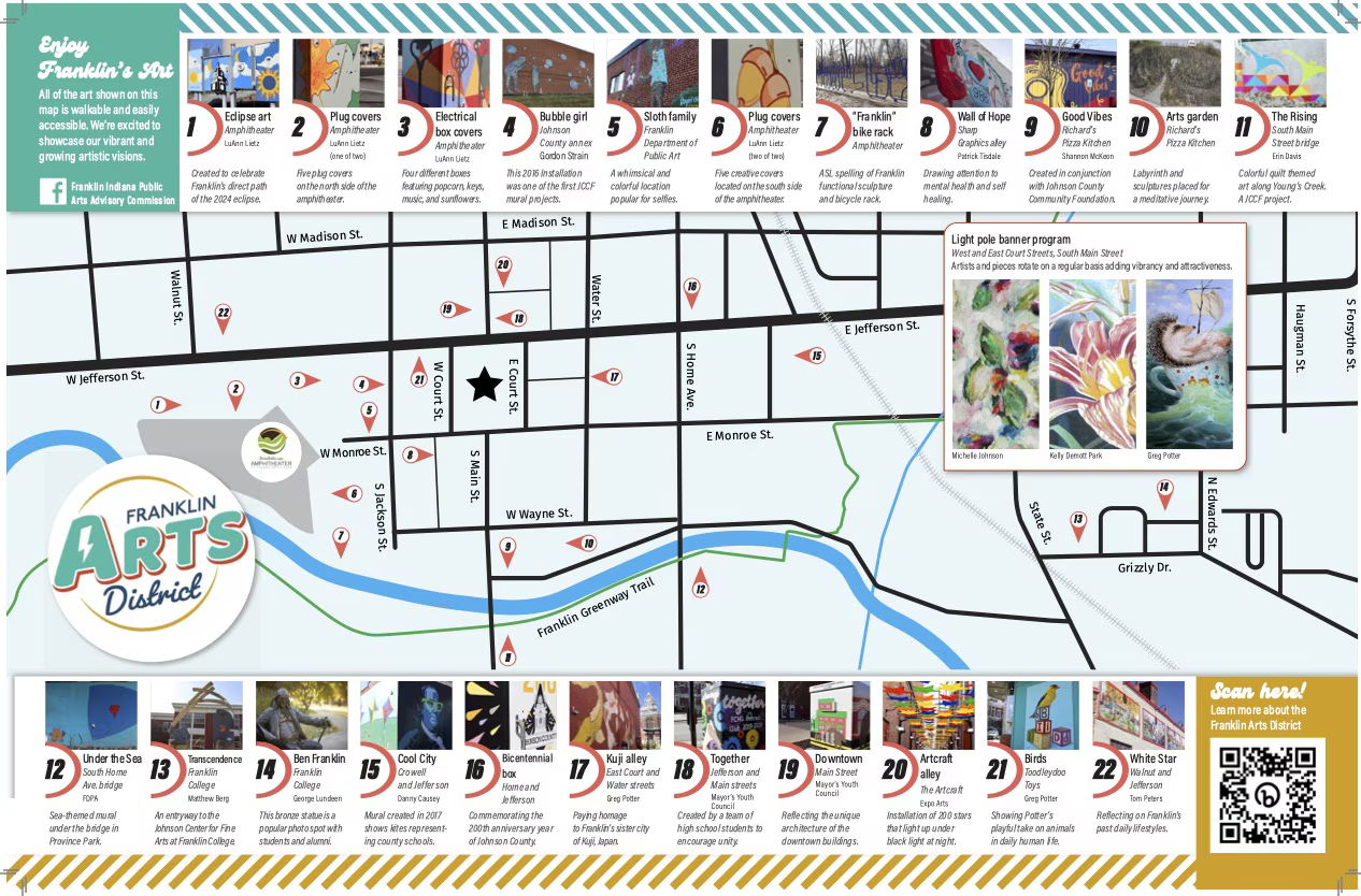 Explore the Franklin Arts District and discover more than 20 stops that feature murals, public art displays, artistic alleys and more. Click here for the full list, which includes art installations that are too new to be on the map.